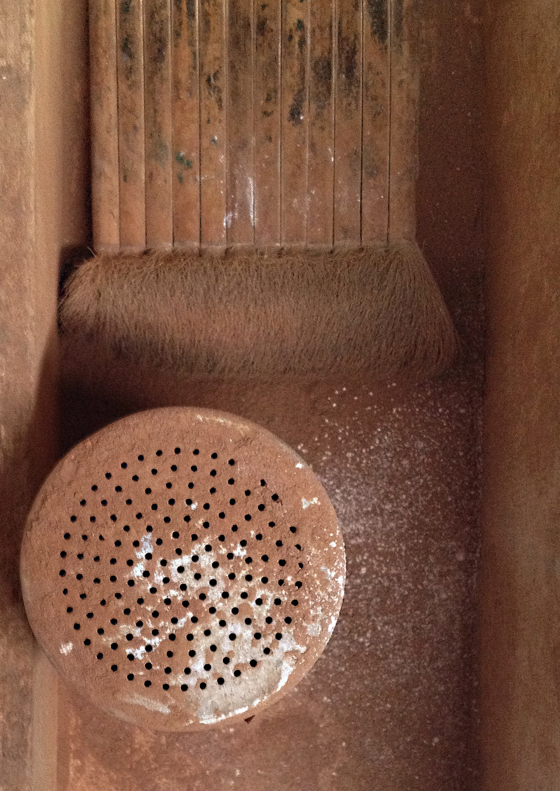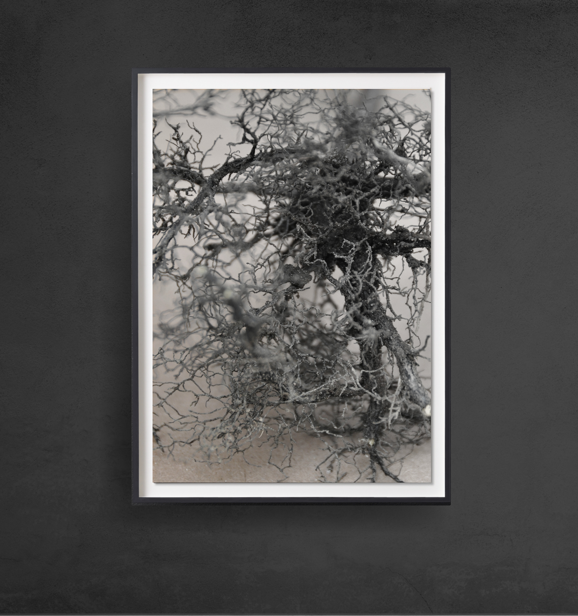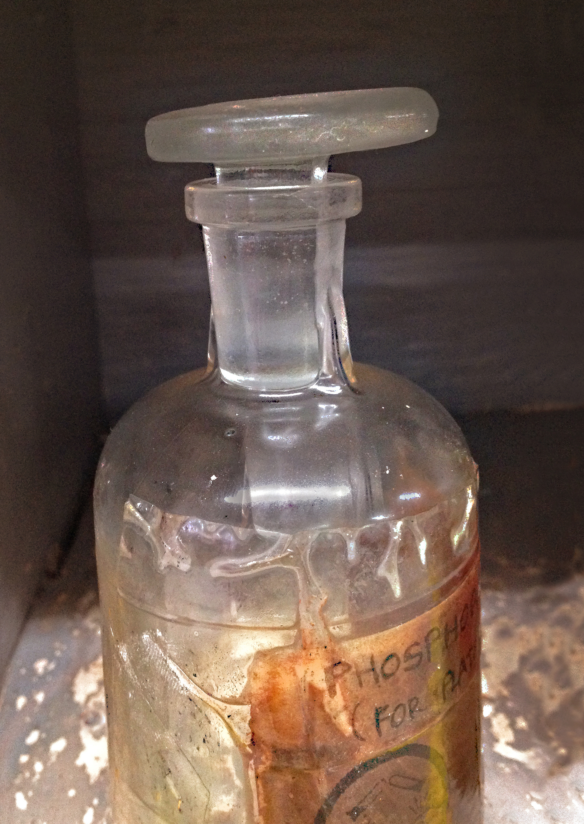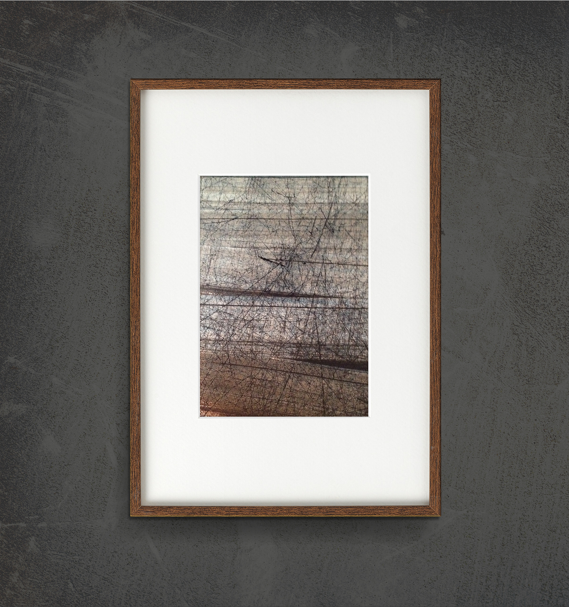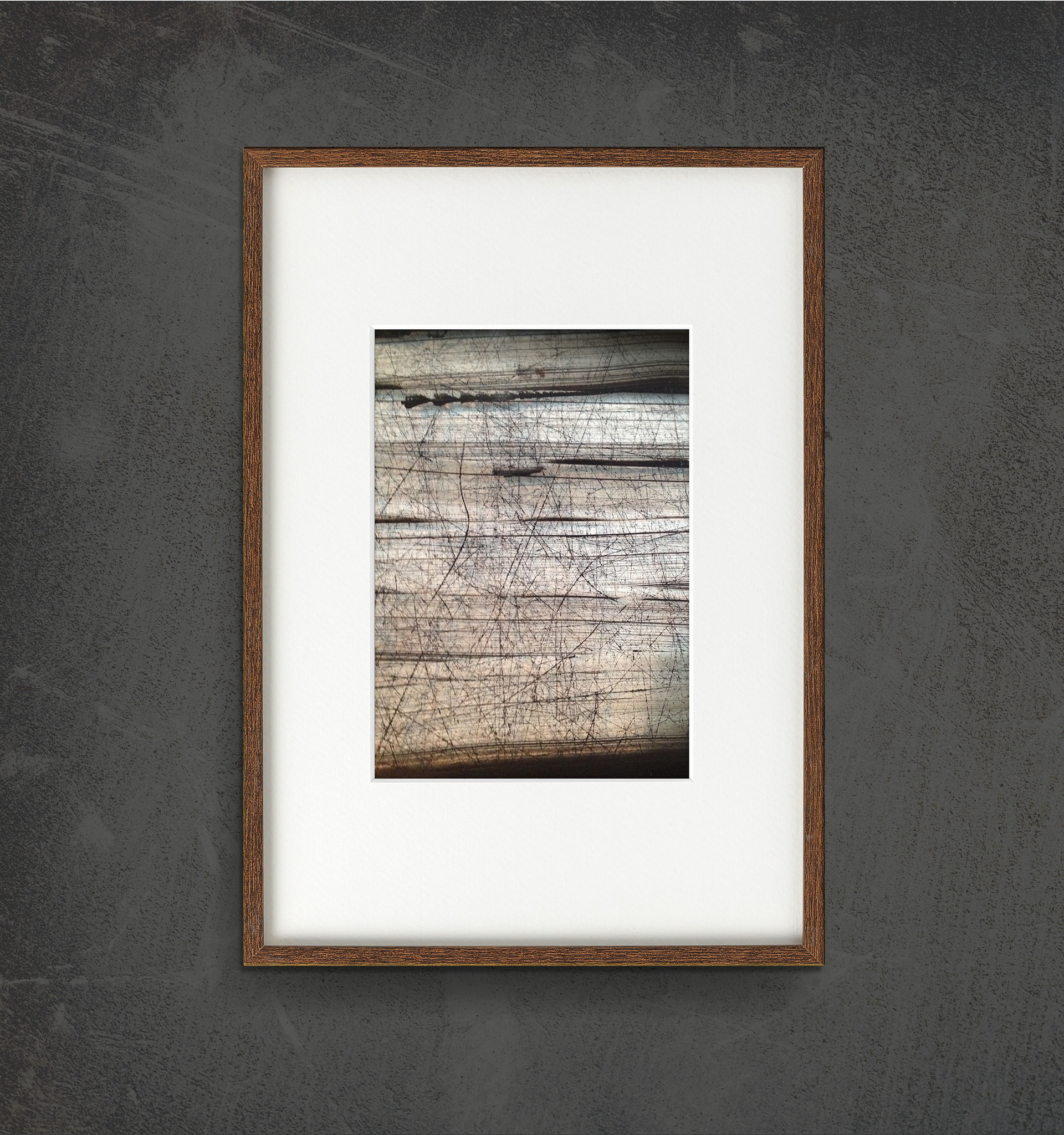 Printing ink on a glass surface / Materials: phosphoric acid, rosin & talc
